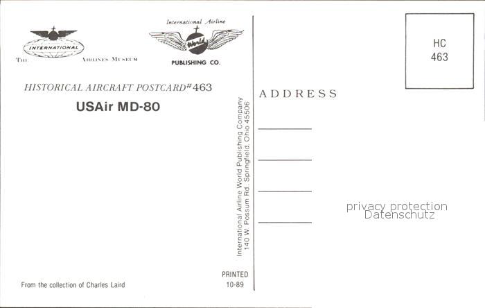 Flugzeuge Zivil USAir MD-80 postalisch nicht gelaufen Erhaltung siehe scans