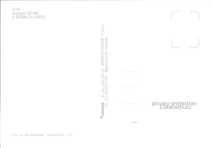 Flugzeuge Zivil UTA Douglas DC-6B F-BGOB Cn 43833 postalisch nicht gelaufen Erhaltung siehe scans