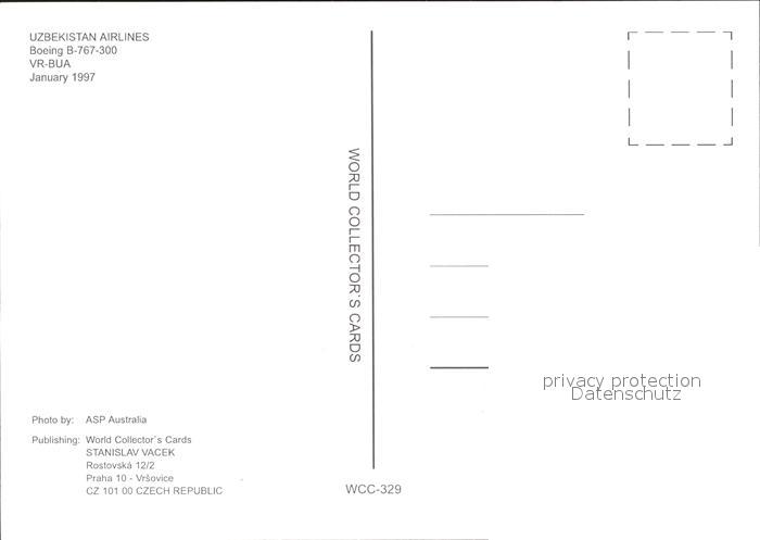 Flugzeuge Zivil Uzbekistan Airlines Boeing 767-300 VR-BUA postalisch nicht gelaufen Erhaltung siehe scans
