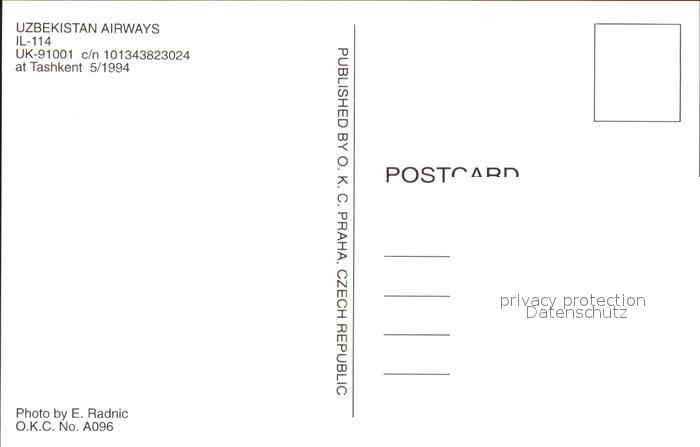 Flugzeuge Zivil Uzbekistan Airways IL-114 UK-91001 c/n 101343823024 postalisch nicht gelaufen