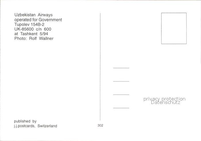 Flugzeuge Zivil Uzbekistan Airways Tupolev 154B-2 UK-85600 c/n 600 postalisch nicht gelaufen Erhaltung siehe scans