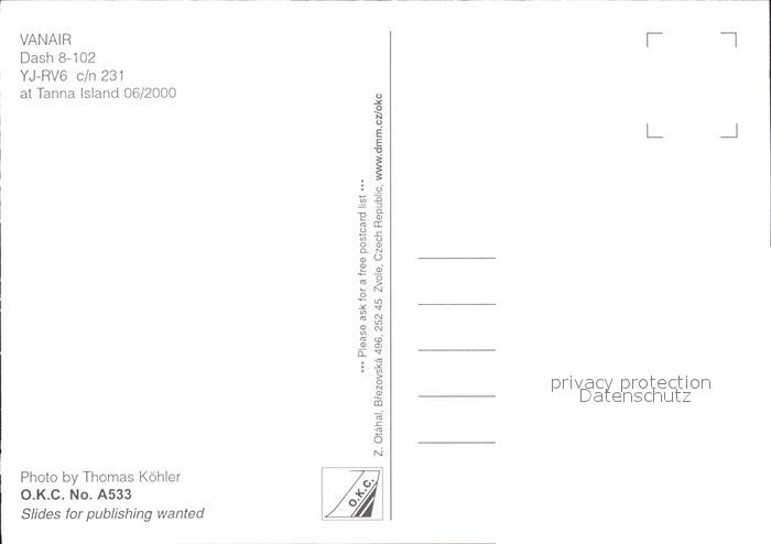Flugzeuge Zivil Vanair Dash 8-102 YJ-RV6 c/n 231 postalisch nicht gelaufen Erhaltung siehe scans