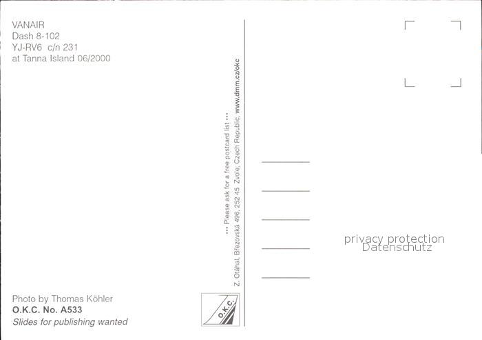 Flugzeuge Zivil Vanair Dash 8-102 YJ-RV6 c/n 231 postalisch nicht gelaufen Erhaltung siehe scans