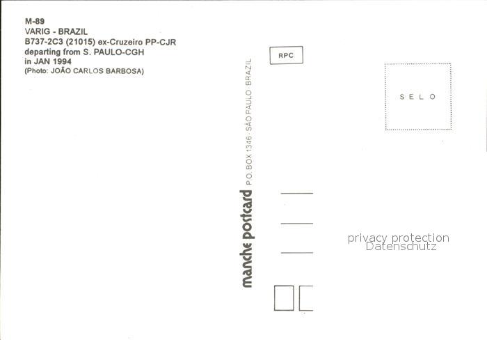 Flugzeuge Zivil Varig B737-2C3 21015 postalisch nicht gelaufen Erhaltung siehe scans