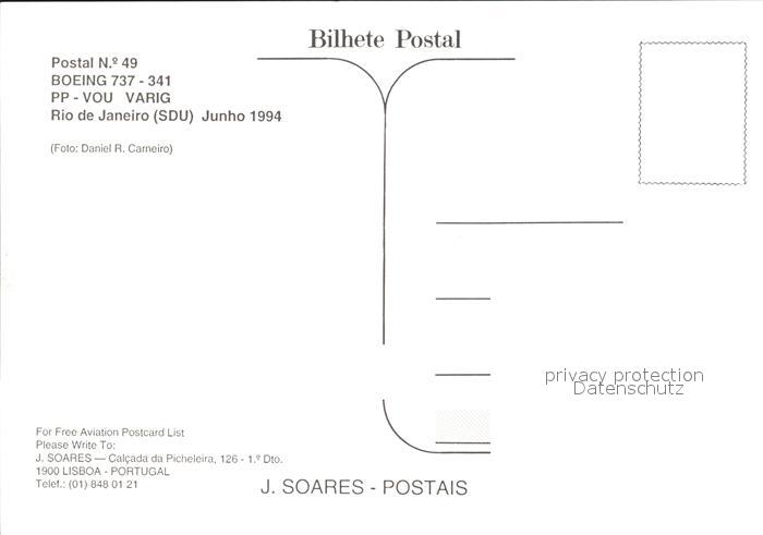 Flugzeuge Zivil Varig Boeing 737-341 PP-VOU postalisch nicht gelaufen Erhaltung siehe scans