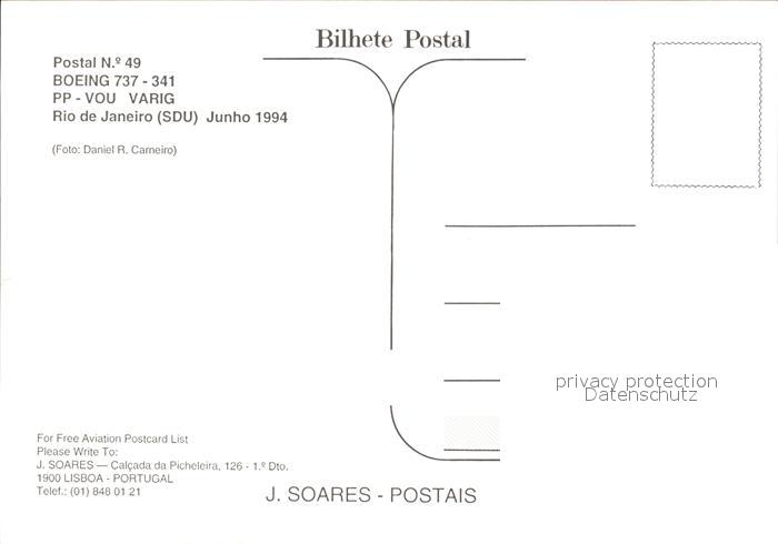 Flugzeuge zivil Varig Boeing 737-341 PP-VOU Rio de Janeiro postalisch nicht gelaufen Erhaltung siehe scans