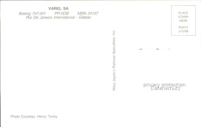 Flugzeuge Zivil Varig Boeing 747-341 PP-VOB MSN 24107 postalisch nicht gelaufen Erhaltung siehe scans