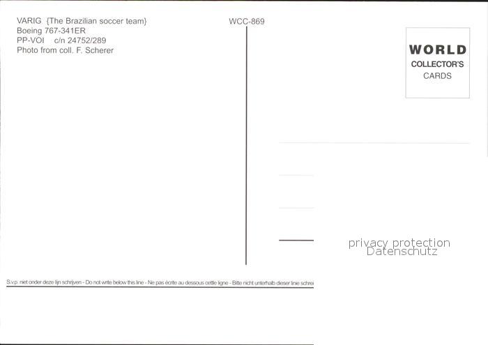 Flugzeuge Zivil Varig Boeing 767-341ER PP-VOI c/n 24752/289 postalisch nicht gelaufen Erhaltung siehe scans