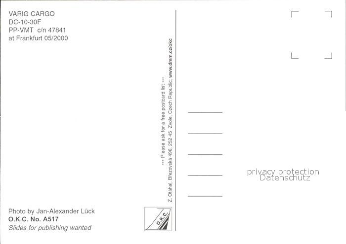 Flugzeuge Zivil Varig Cargo DC-10-30F PP-VMT c/n 47841 postalisch nicht gelaufen Erhaltung siehe scans