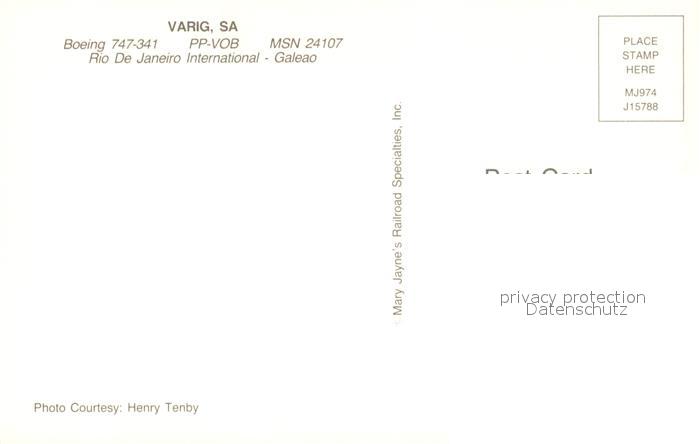 73220697 Flugzeuge Zivil Varig SA Boeing 747-341 PP-VOB MSN 24107 KatCode 22120000001300