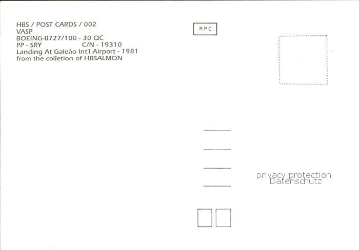 Flugzeuge Zivil Vasp Boeing 727-100 30 QC PP-SRY postalisch nicht gelaufen Erhaltung siehe scans
