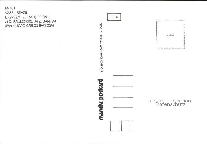 Flugzeuge zivil VASP-Brazil B727/2AI postalisch nicht gelaufen Erhaltung siehe scans