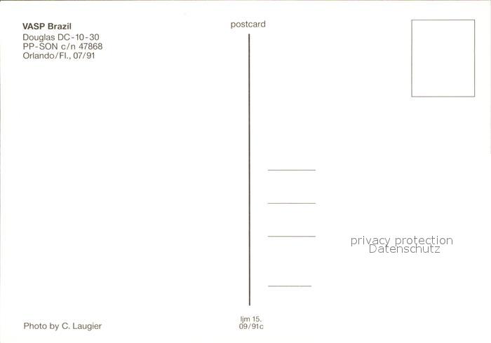 Flugzeuge Zivil VASP Brazil Douglas Dc-10-30 PP-SON c/n 47868 postalisch nicht gelaufen Erhaltung siehe scans