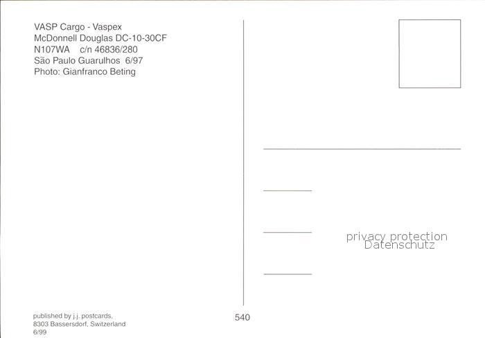 Flugzeuge Zivil VASP Cargo Vaspex McDonnell Douglas DC-10-30CF N107WA postalisch nicht gelaufen Erhaltung siehe scans