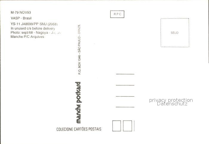 Flugzeuge Zivil VASP YS-11 JA8699 PP-SMJ 2068 postalisch nicht gelaufen Erhaltung siehe scans