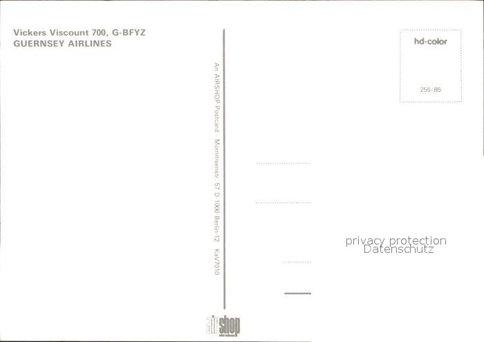 Flugzeuge Zivil Vickers Viscount 700 G-BFYZ Guernsey Airlines postalisch nicht gelaufen