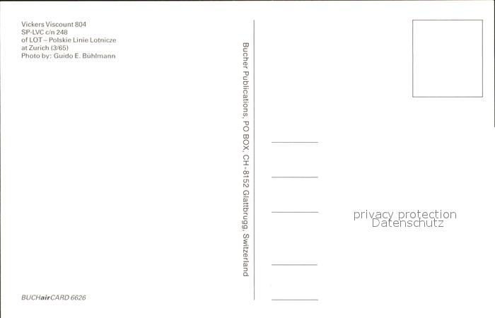 Flugzeuge Zivil Vickers Viscount 804 SP-LVC c/n 248 LOT-Polskie Linie Lotnicze postalisch nicht gelaufen Erhaltung siehe scans