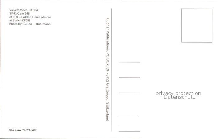 Flugzeuge Zivil Vickers Viscount 804 SP-LVC c/n 248 LOT Polskie Linie Lotnicze postalisch nicht gelaufen Erhaltung siehe scans