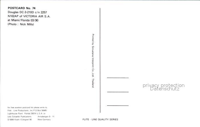 Flugzeuge Zivil Victoria Air S.A. Douglas DC-3-210D c/n 2257 N102AP postalisch nicht gelaufen Erhaltung siehe scans