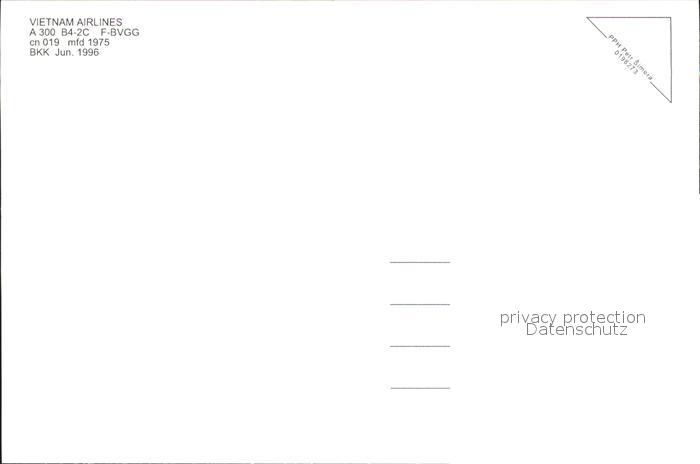 Flugzeuge Zivil Vietnam Airlines A 300 B4-2C F-BVGG cn 019 postalisch nicht gelaufen Erhaltung siehe scans
