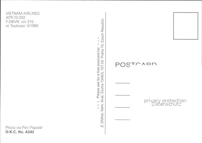 Flugzeuge Zivil Vietnam Airlines ATR-72-202 F-OKVN c/n 215 postalisch nicht gelaufen Erhaltung siehe scans