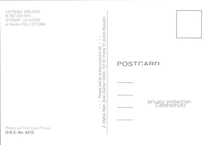 Flugzeuge Zivil Vietnam Airlines B-767-324 S7-RGW c/n 27393 postalisch nicht gelaufen Erhaltung siehe scans