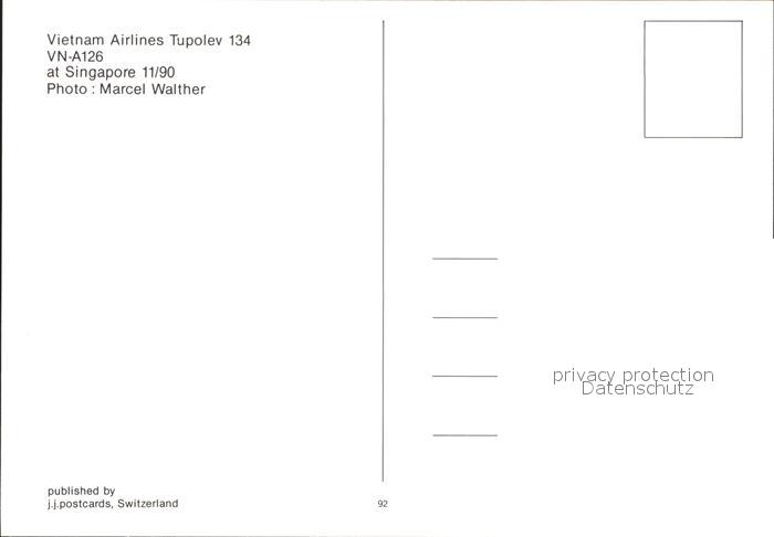 Flugzeuge Zivil Vietnam Airlines Tupolev 134 Singapore postalisch nicht gelaufen Erhaltung siehe scans