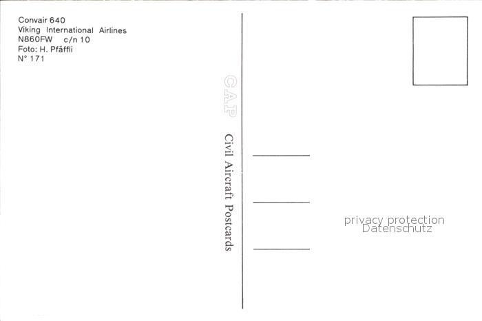 Flugzeuge Zivil Viking International Airlines Convair 640 N860FW c/n 10 postalisch nicht gelaufen Erhaltung siehe scans