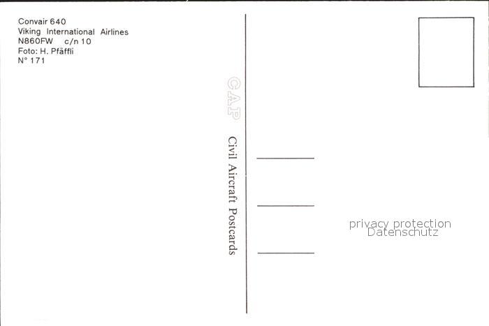 Flugzeuge Zivil Viking International Airlines Convair 640 N860FW c/n 10 postalisch nicht gelaufen Erhaltung siehe scans