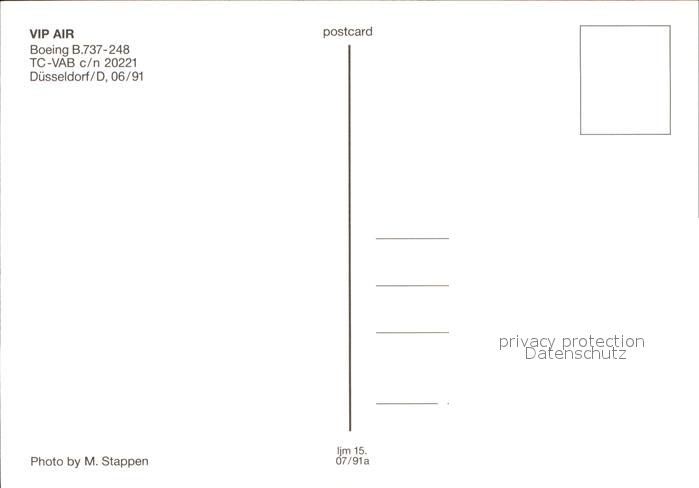 Flugzeuge Zivil Vip Air Boeing B.737-248 TC-VAB c/n 20221 postalisch nicht gelaufen Erhaltung siehe scans