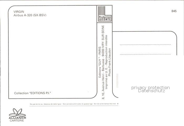 Flugzeuge Zivil Virgin Airbus A-320 SX-BSV postalisch nicht gelaufen Erhaltung siehe scans