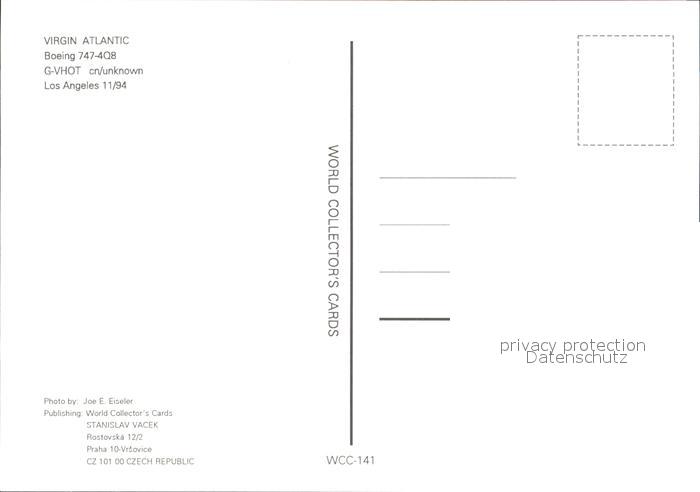 Flugzeuge Zivil Virgin Atlantic Boeing 747-4Q8 G-VHOT postalisch nicht gelaufen Erhaltung siehe scans