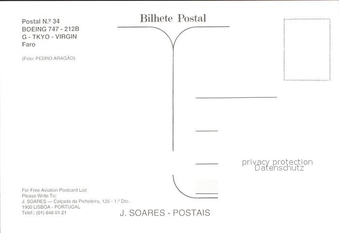 Flugzeuge zivil Virgin Boeing 747-212B G-TKYO Faro postalisch nicht gelaufen Erhaltung siehe scans