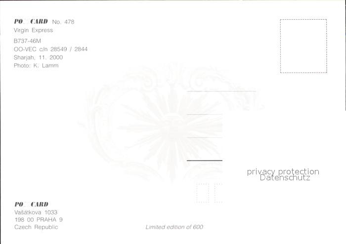 Flugzeuge Zivil Virgin Express B737-46M OO-VEC c/n 28549/2844 postalisch nicht gelaufen
