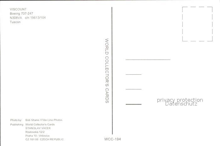 Flugzeuge Zivil Viscount Boeing 737-247 N308VA c/n 19613/104 postalisch nicht gelaufen Erhaltung siehe scans