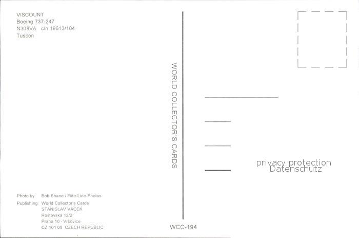 Flugzeuge Zivil Viscount Boeing 737-247 N308VA c/n 19613/104 postalisch nicht gelaufen Erhaltung siehe scans