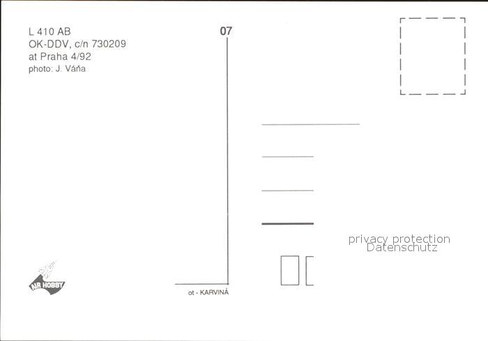 Flugzeuge Zivil Vitkovice L-410 AB OK-DDV c/n 730209 postalisch nicht gelaufen Erhaltung siehe scans