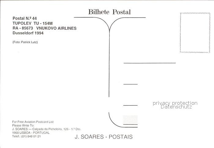 Flugzeuge Zivil Vnukovo Airlines Tupolev TU-154M RA-85673 postalisch nicht gelaufen Erhaltung siehe scans