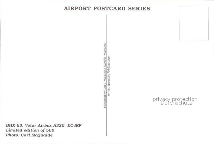 Flugzeuge Zivil Volar A320 EC-IEP postalisch nicht gelaufen Erhaltung siehe scans
