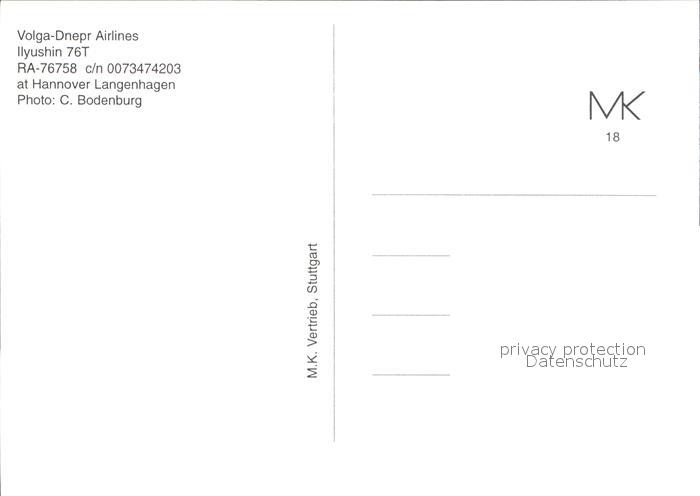 Flugzeuge Zivil Volga-Dnepr Airlines Ilyushin 76T RA-76758 postalisch nicht gelaufen Erhaltung siehe scans