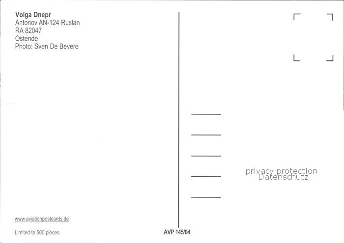 Flugzeuge Zivil Volga Dnepr Antonov AN-124 Ruslan RA-82047 postalisch nicht gelaufen Erhaltung siehe scans