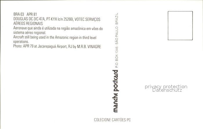 Flugzeuge Zivil Votec Servicos Aereos Regionais Douglas DC-3 C-47A PT-KYX c/n 25266 postalisch nicht gelaufen Erhaltung siehe scans
