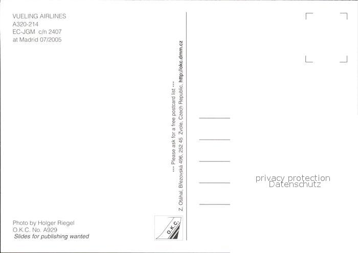 Flugzeuge Zivil Vueling Airlines A320-214 EC-JGM c/n 2407 postalisch nicht gelaufen Erhaltung siehe scans
