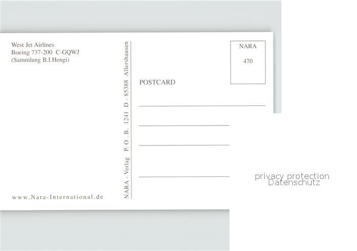 Flugzeuge Zivil West Jet Airlines Boeing 737-200 C-GQWJ postalisch nicht gelaufen Erhaltung siehe scans