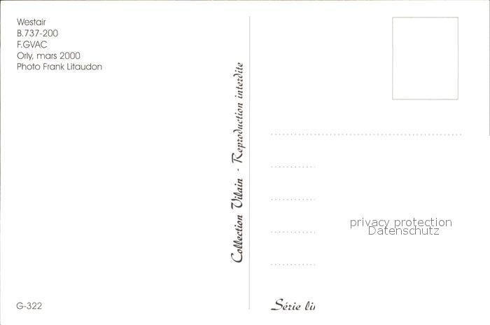 Flugzeuge Zivil Westair B-737-200 F-GVAC postalisch nicht gelaufen Erhaltung siehe scans