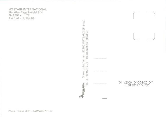 Flugzeuge Zivil Westair International Handley Page Herald 214 G-ATIG cn 177 postalisch nicht gelaufen Erhaltung siehe scans