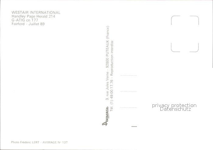 Flugzeuge Zivil Westair International Handley Page Herald 214 G-ATIG cn 177 postalisch nicht gelaufen Erhaltung siehe scans