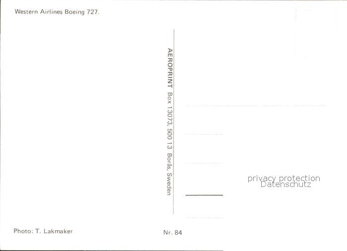 Flugzeuge Zivil Western Airlines Boeing 727 postalisch nicht gelaufen Erhaltung siehe scans