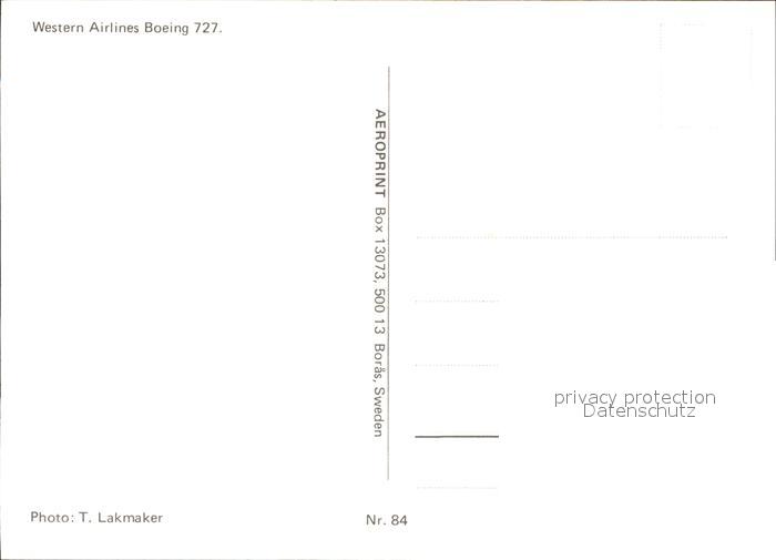Flugzeuge Zivil Western Airlines Boeing 727 postalisch nicht gelaufen Erhaltung siehe scans