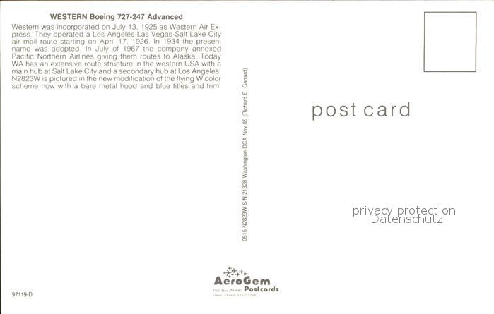 Flugzeuge Zivil Western Boeing 727-247 Advanced postalisch nicht gelaufen Erhaltung siehe scans